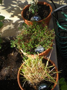 Roses on either side, Freesia bulbs in the middle and carrot seeds in a row along the front. Not sure if the carrots are going to grow, stay tuned.