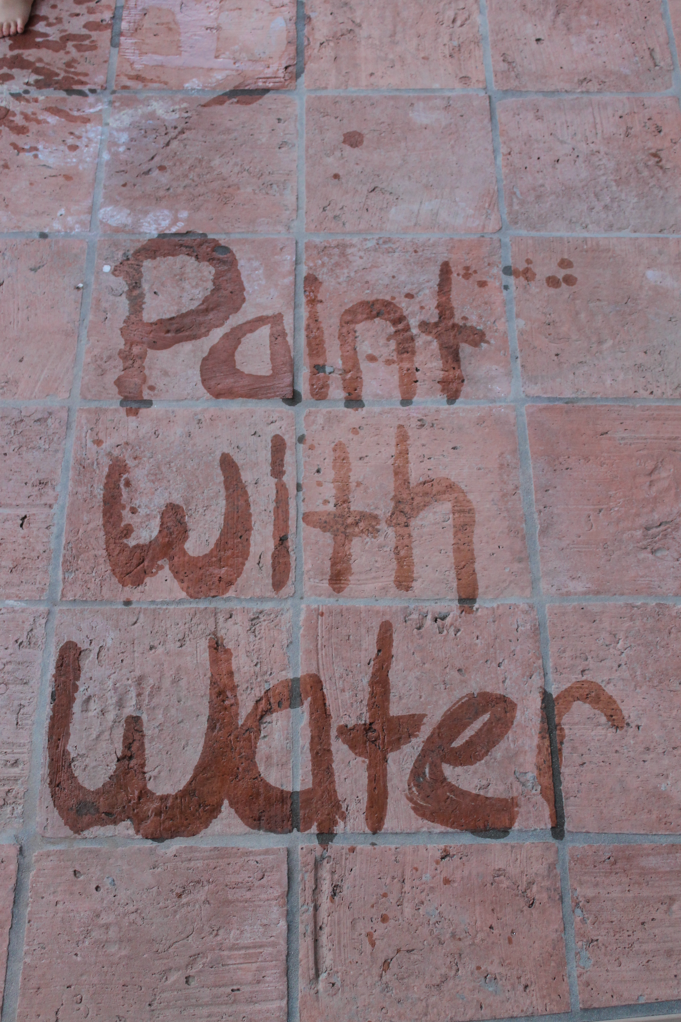 We discovered at the Children’s Museum one of the simplest and most fun activities – painting with water. Yes, you read that right. We get out the paint brushes, rolers and sponges, get a bucket of water and head out to the patio to get our paint on: