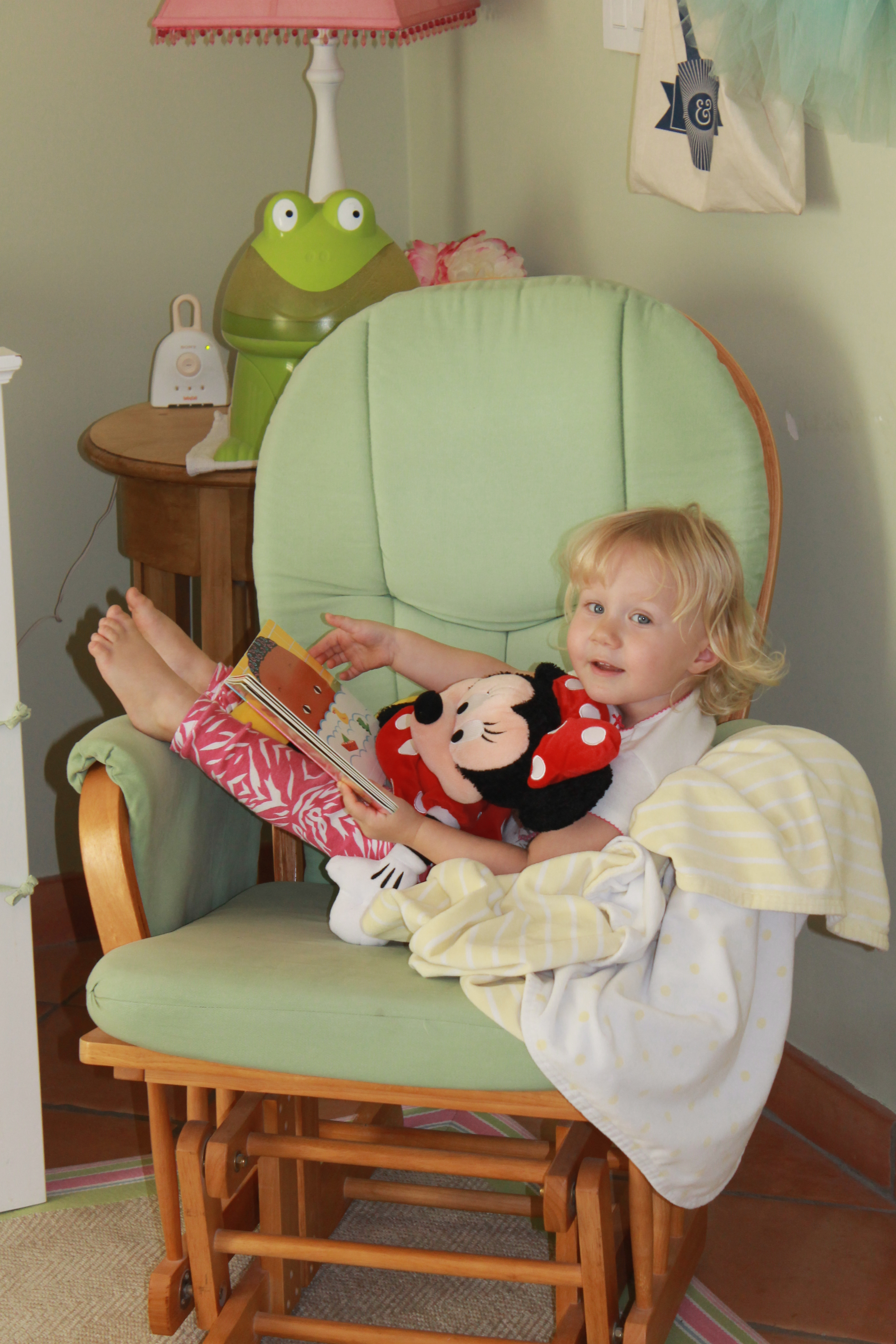 But once in a while we see them doing something that we know they learned from us. And it’s a nice thing. And it shows that maybe they are getting as much of (or more hopefully) of the good things we’re teaching them and not all the “patience lost” moments. I got a little of this reward on Saturday when I walked by Baylor’s room and found her snuggled in her chair with Minnie Mouse, a blanket and a book. She was quietly “reading” the story to Minnie. I watched her for a few seconds before she looked up and smiled and then went back to her book.