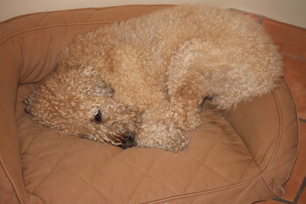 Bear was so tired, his butt didn’t make it all the way into bed.