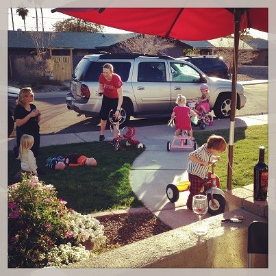 We live in a one of those weird neighborhoods where we know (and like) almost everyone on our street. Not only that, but there are a ton of kids and they have a blast playing together. Another benefit is when you get a text from a neighbor at 8am that says “Does 345 work for wine/bikes?”. The answer is yes. Yes it does.