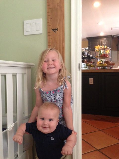 I have a deep desire to get some stuff checked off my to do list in an attempt to sleep well at night – (I’ve been having those dreams where you are headed to class, but you can’t find it. You get there and you’re not sure if you’re there on the right day and time)- so Peter bought and stained the board and then we tag teamed the decorations. I followed the instructions on 517 Decorations which were descriptive and simple. She had a cleaver way to get the numbers on the board and gave the font and size which made it a no brainer. It is hanging in their room and looks awesome! Using their check up records, I marked in purple and green their height from birth to now. The only down side is that I now have to measure Bay after every dinner where she eats green beans because we told her they would make her grow. There could be worse side effects….