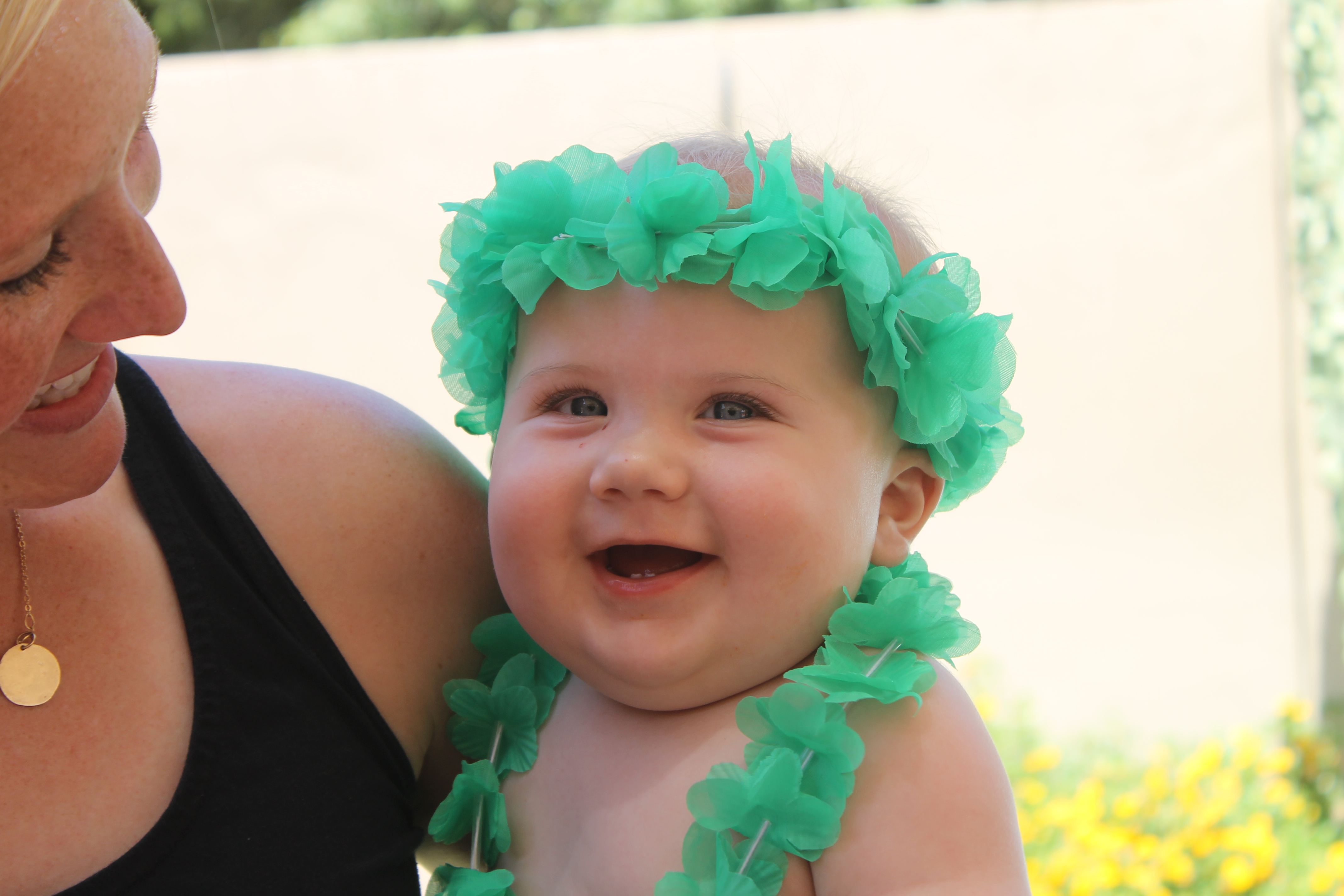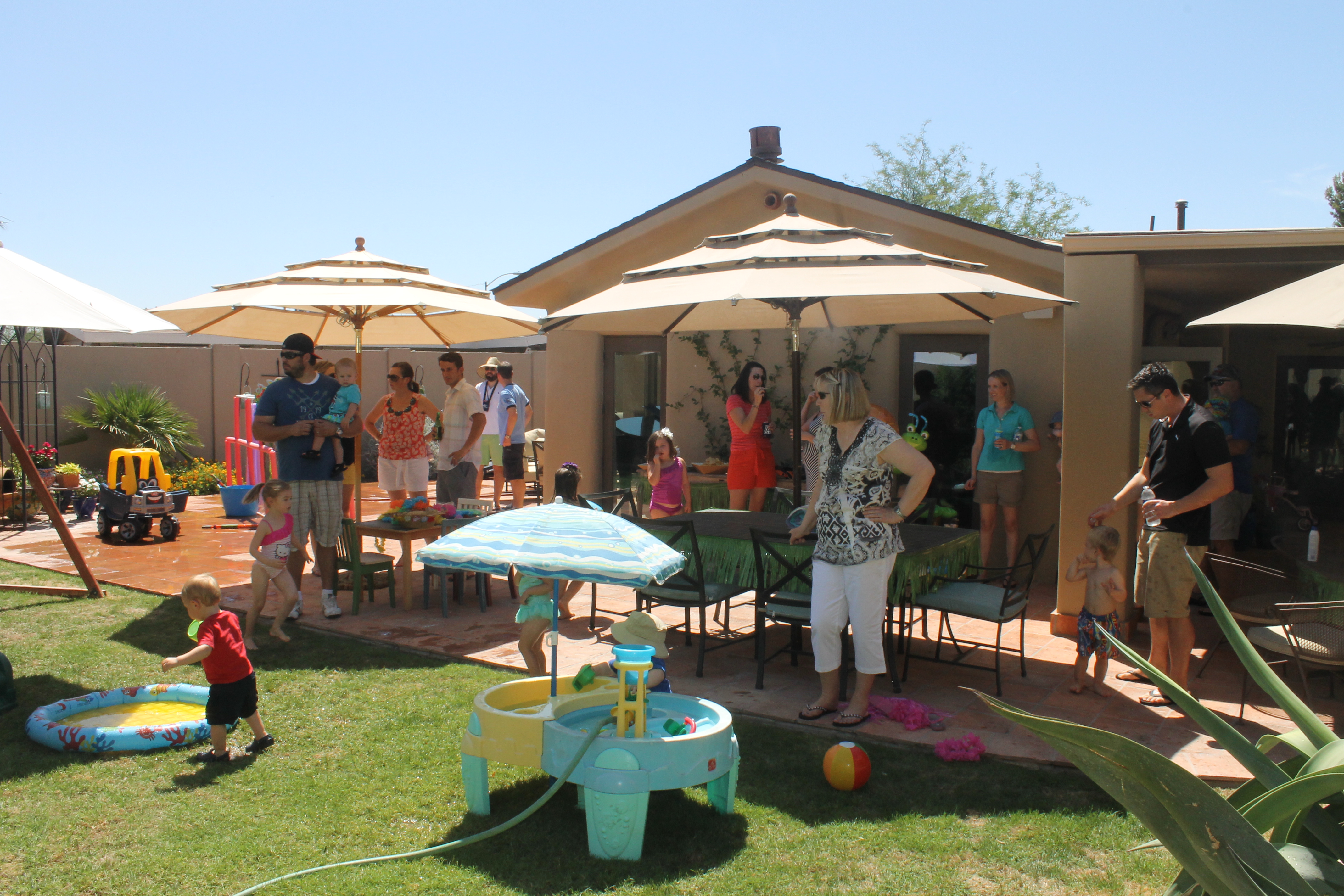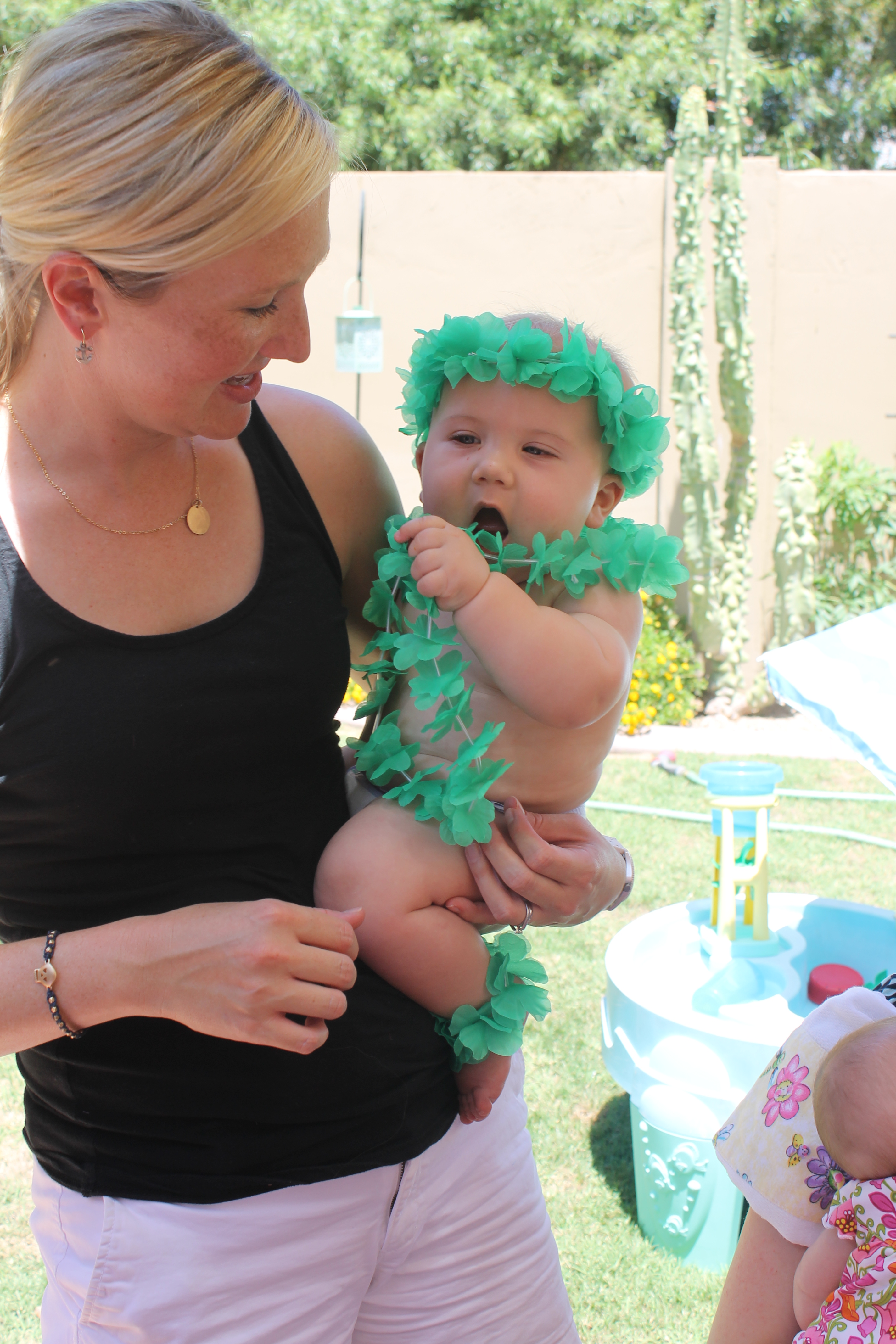 And now for the big event: the friend birthday bash. What do you do when you live in AZ, have a birthday in June and you don’t have a pool? Why you throw a splash party (again – and just give it a new theme). Last year we had a splash par-tay, this year we had a luau. Same events, just with a Hawaiian theme. The result? A fantastic bash, event at 109 degrees.