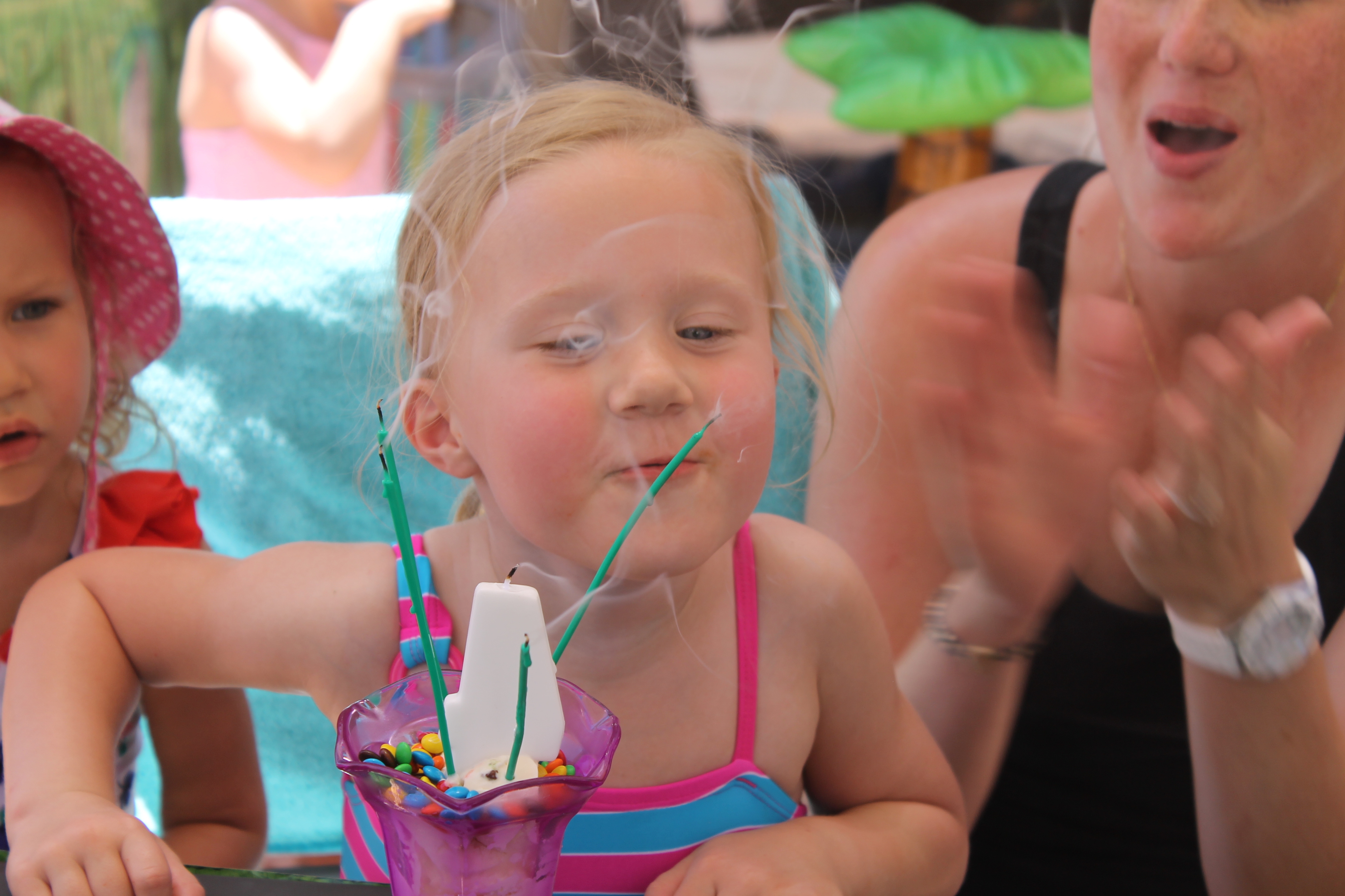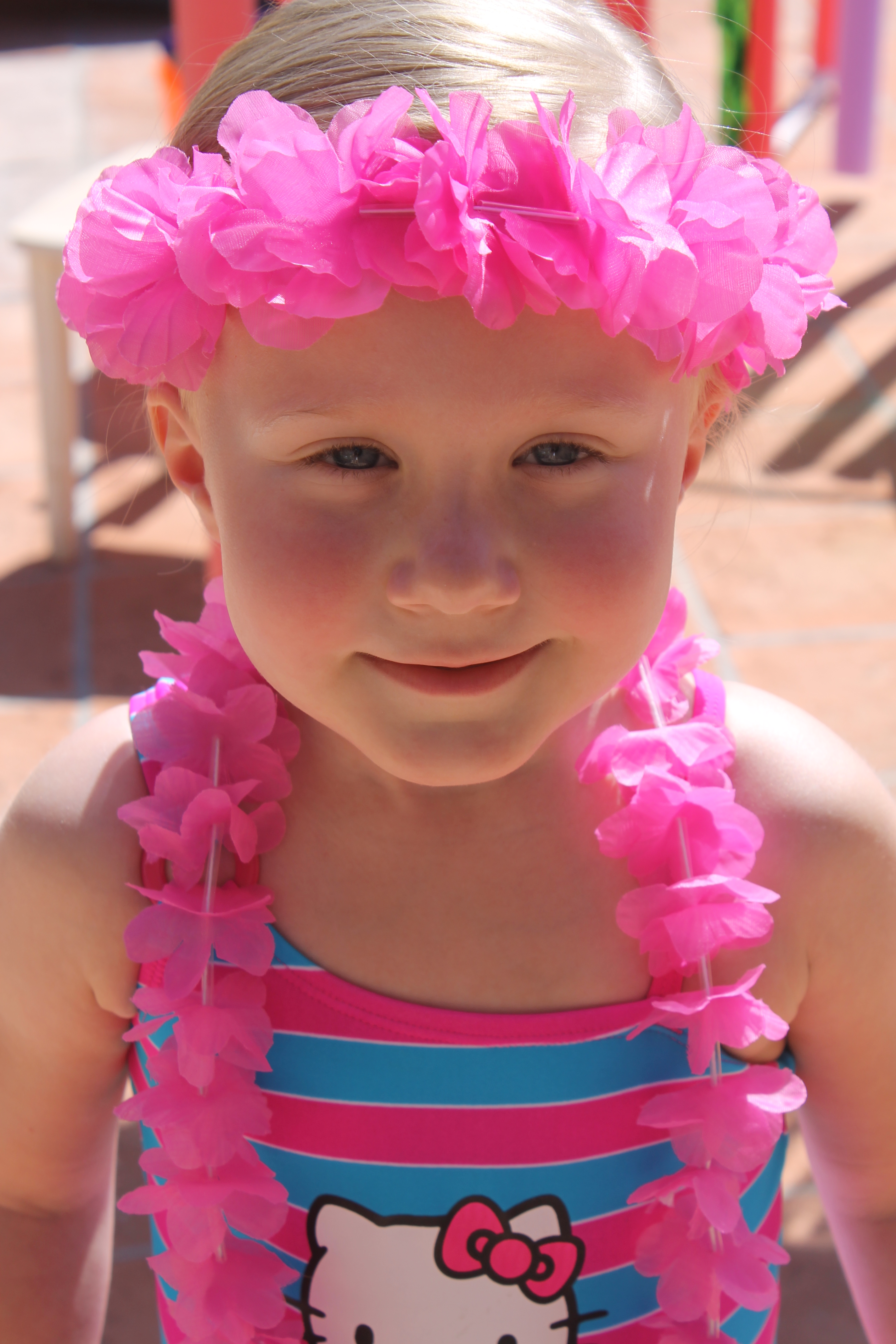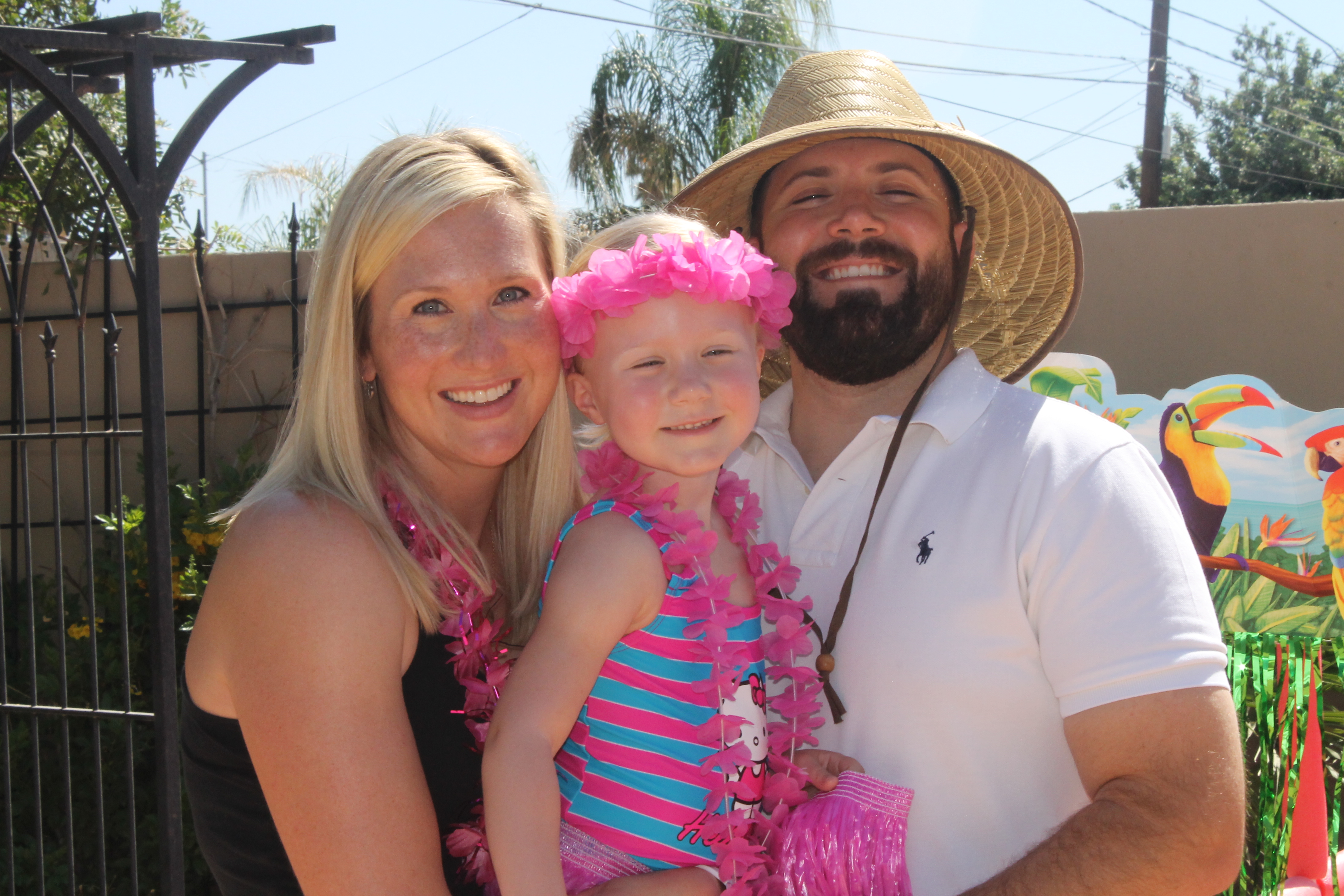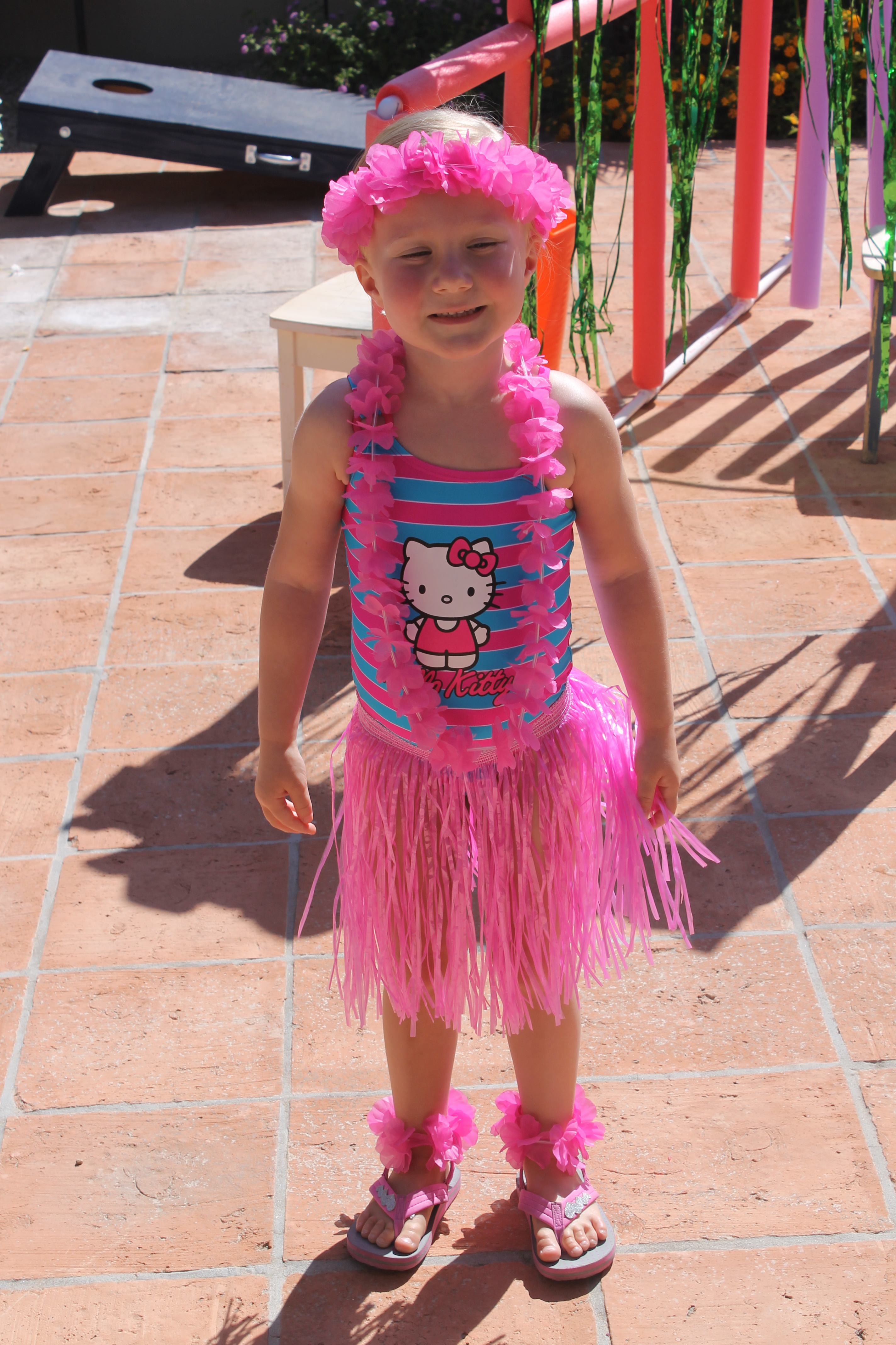 And now for the big event: the friend birthday bash. What do you do when you live in AZ, have a birthday in June and you don’t have a pool? Why you throw a splash party (again – and just give it a new theme). Last year we had a splash par-tay, this year we had a luau. Same events, just with a Hawaiian theme. The result? A fantastic bash, event at 109 degrees.