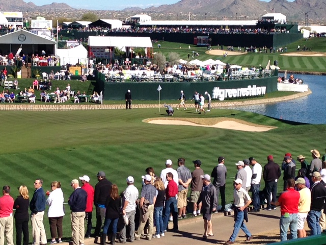 Next was the Waste Management Open. I vowed long ago that I would not go back until I could be up in a sky box and away from the drunken masses. Thankfully for me, one of Peter’s clients got sick so I got to go on Sunday morning!