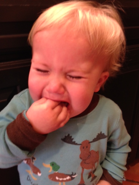 Auggie got a new tooth. And everyone knows about it because he looked like this for pretty much the entire month. He’s crying in this picture because I wouldn’t let him play with the straightener.
