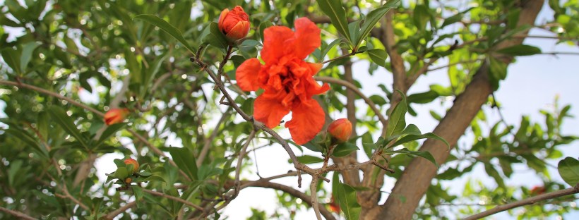 One of the lone survivors of our backyard re-landscaping was this Pomegranate tree. It was a bit neglected, but after a good trim and lots of fertilizer, it’s full of blooms. And hopefully lots of fruit too.