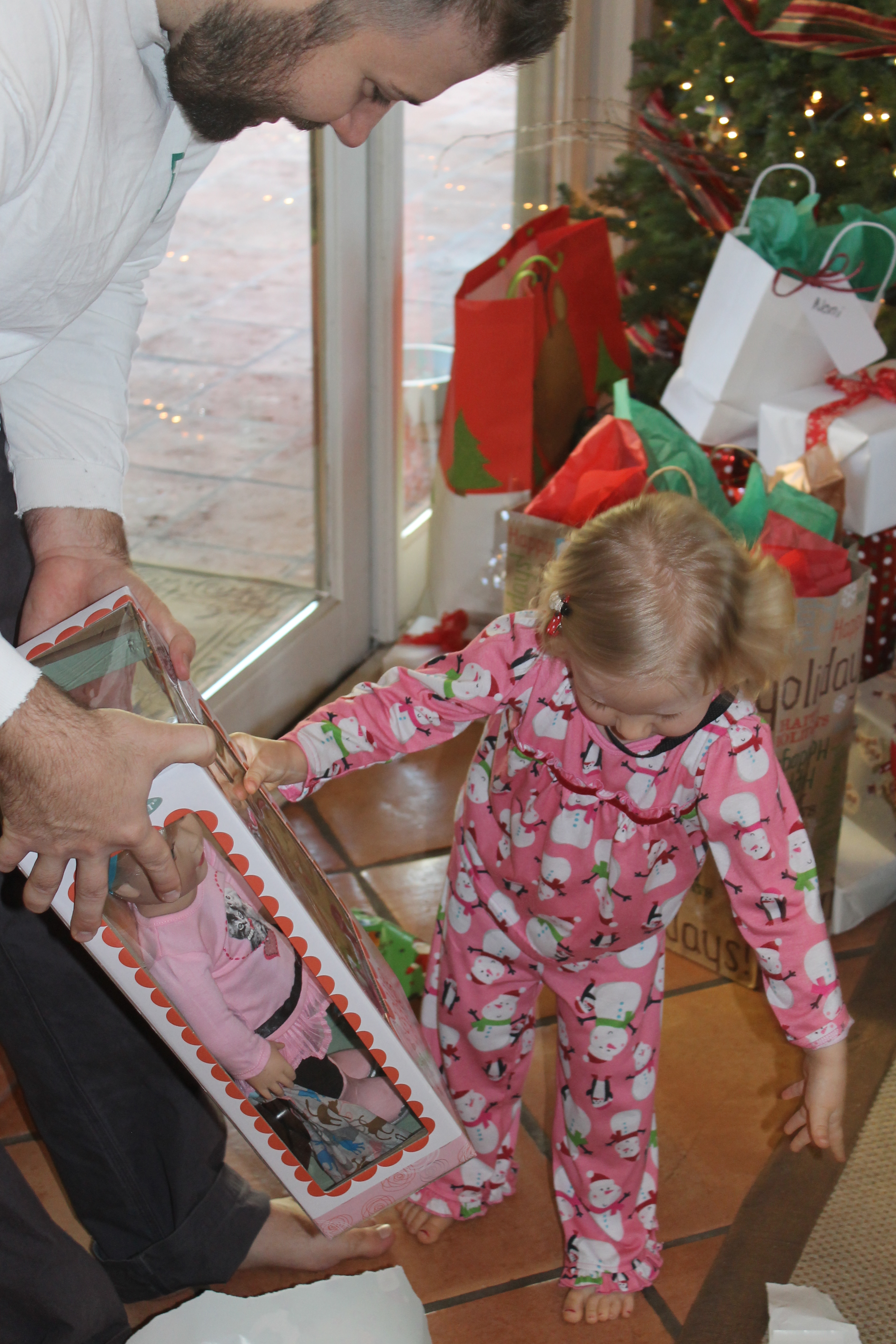 We kept with the tradition of the family sneaking all their gifts to one house so that the kids awake/arrive to a sea of presents. This year we hosted gift opening and it was a blast. PW and I both went to Bay’s room when she woke up and the first question out of her mouth was “did Santa come?”. We told her yes and that he had eaten his cookies and milk and that the reindeer loved their carrots. Her response? “did he put his dishes in the sink?”. Clearly she is my child.