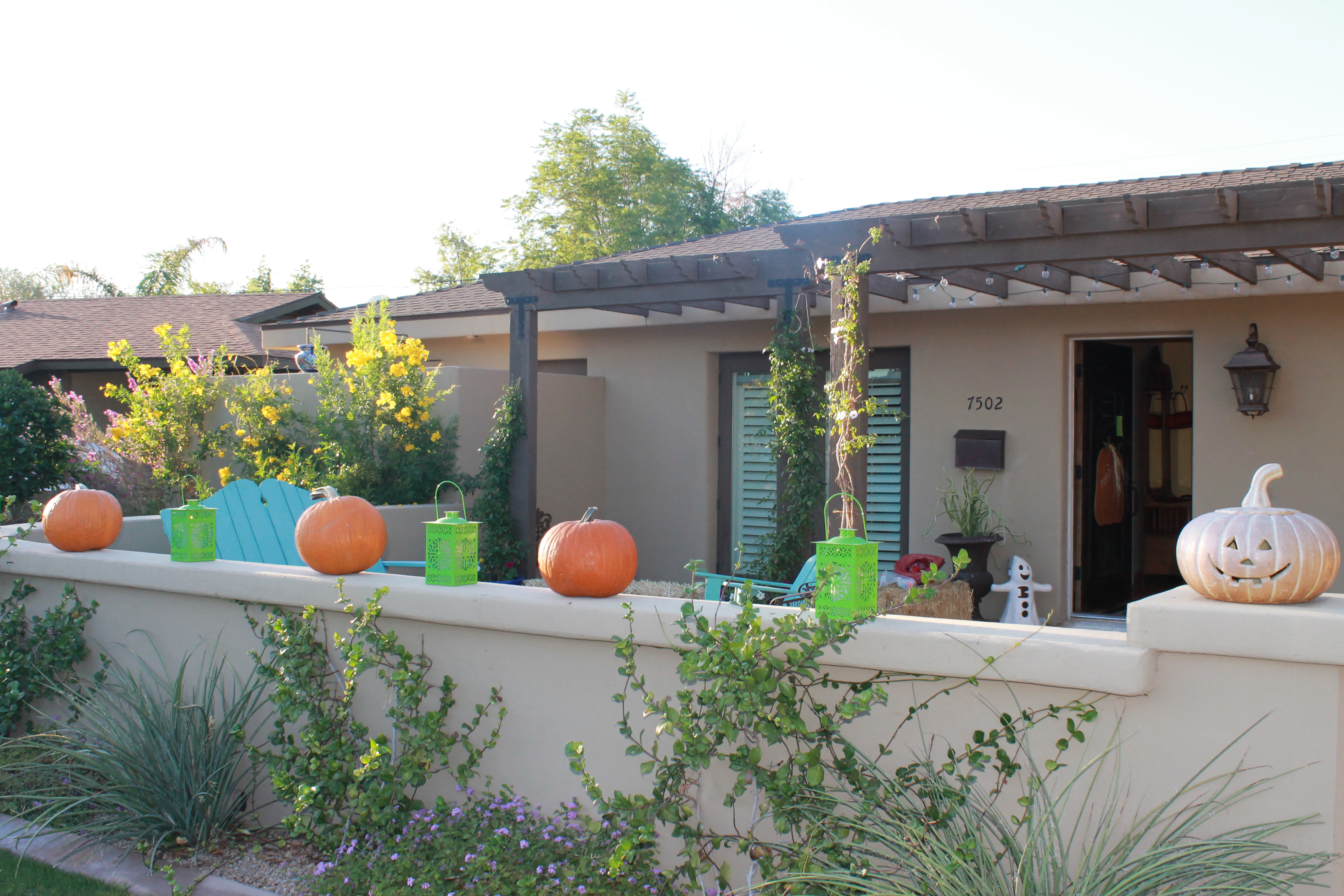 Saturday night we hosted a neighborhood party. We decorated our front patio with the straw bales from Trunk or Treat (which were actually quite handy), iced down the drinks and set out snacks and set out to chat with our neighbors for a longer stretch of time than it takes to walk by their homes with Bear.