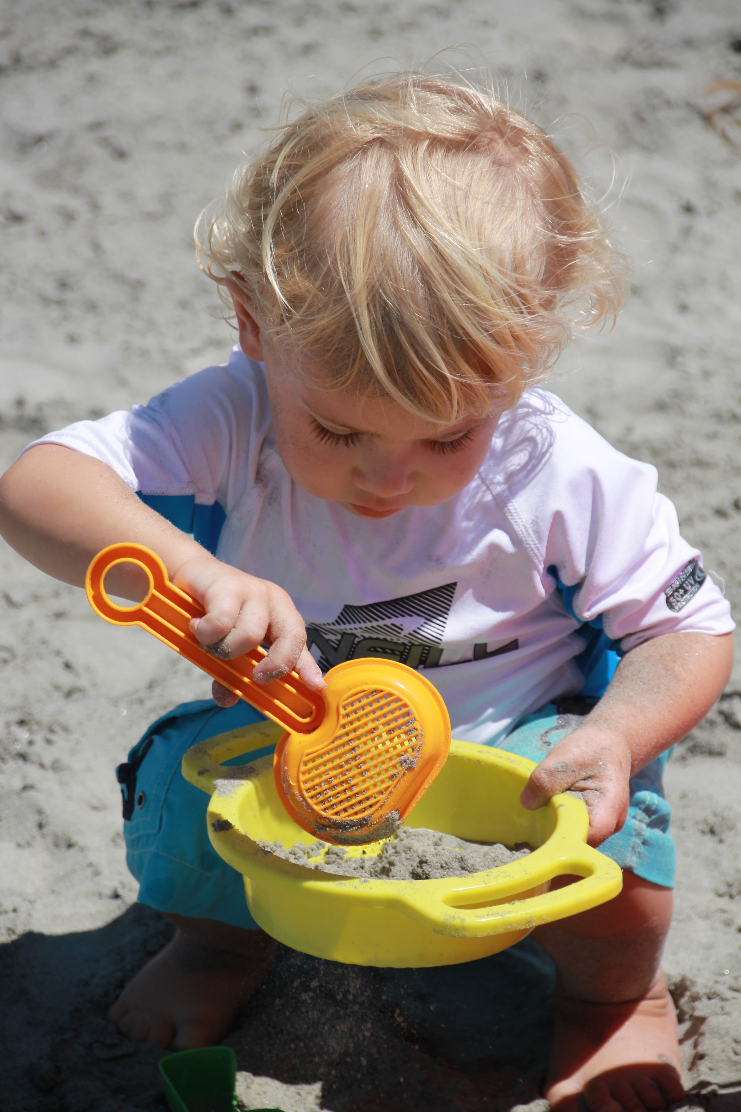 Auggie! Let’s build a sand castle! Let me take your picture while you work. Auggie. Auggie! Over here!