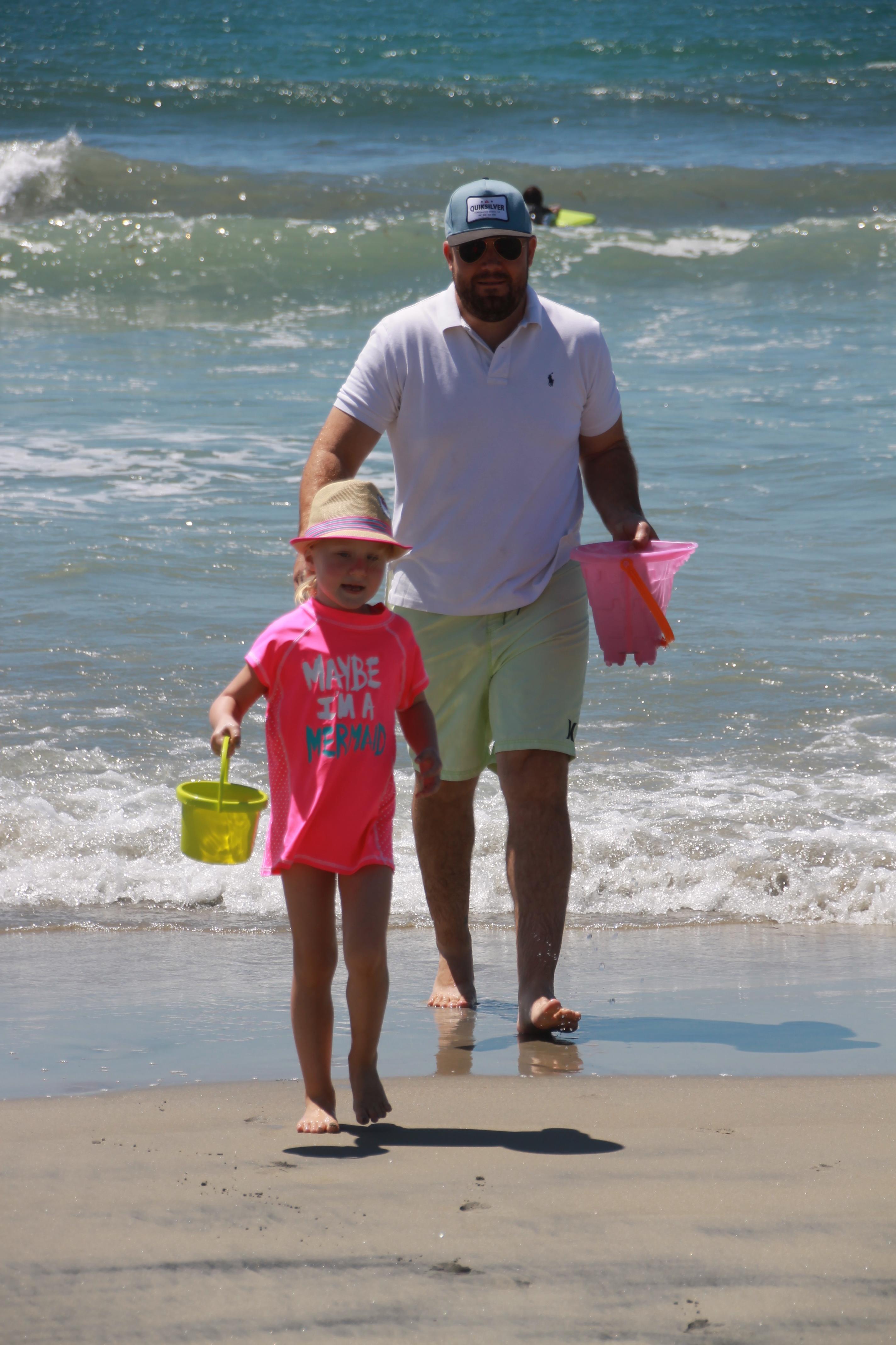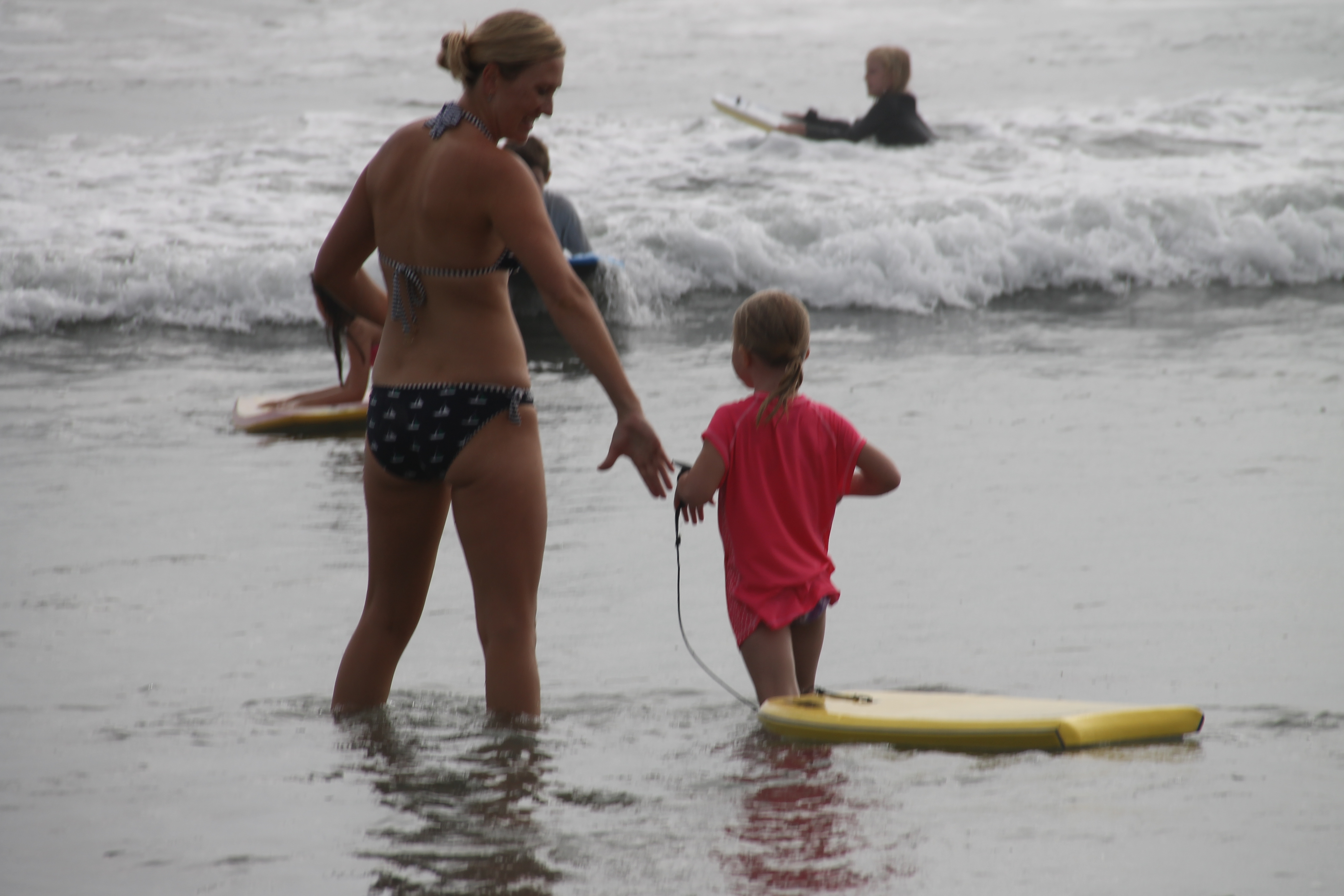 A few whiny minutes later, I convinced her to lay out on the board between waves. As she began to protest, I shoved her and the board into a breaking wave and then watched in awe as she rode it all the way to the shore. When the board stopped, she waited a second before jumping up. She turned and looked at me with the biggest, toothless smile and screamed “LET’S DO IT AGAIN!!!!!!!!!”. Which we did. For the next 2 hours and then for hours more the next day.