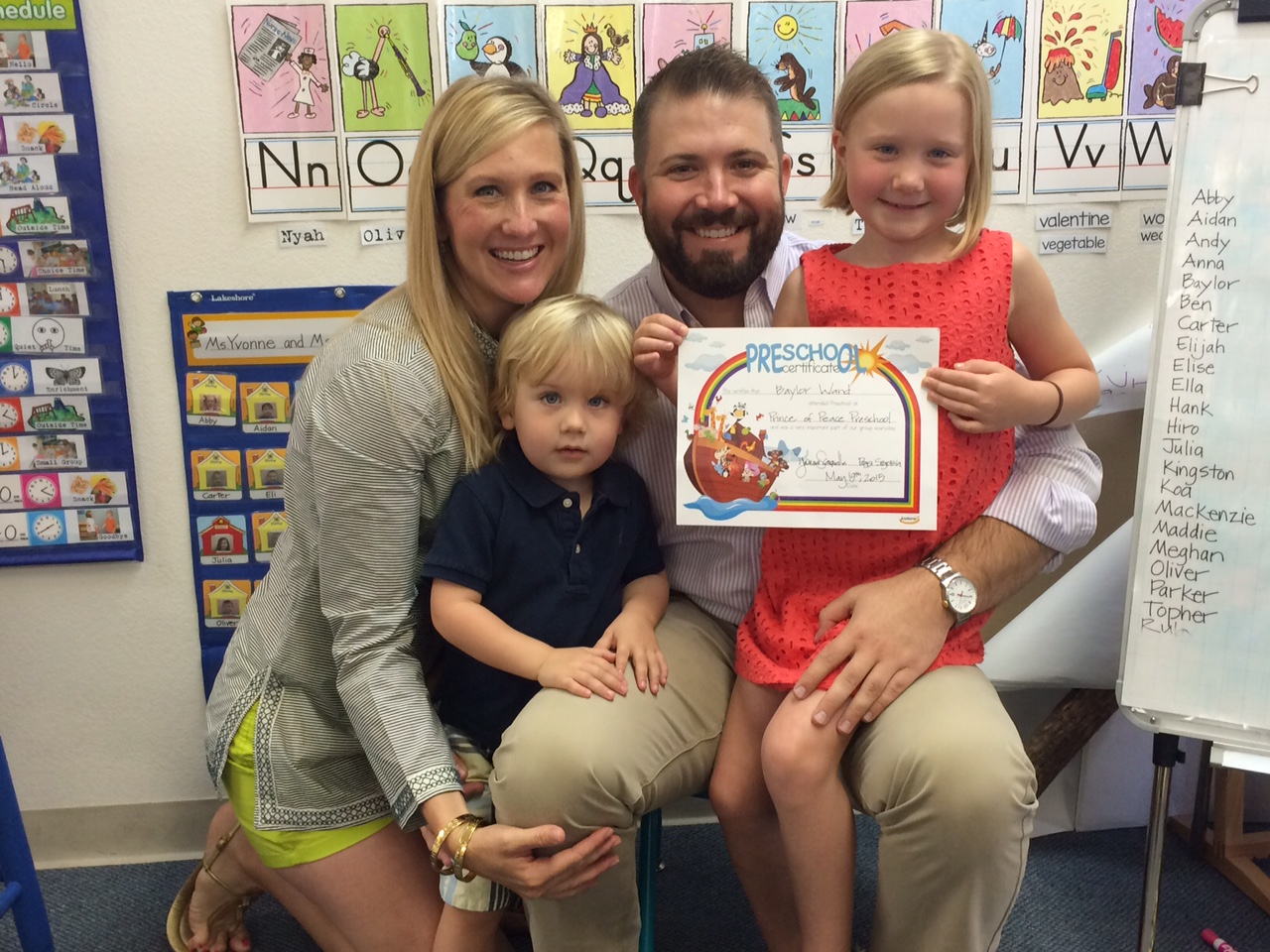 It was surreal to watch B walk down the church aisle and receive her preschool diploma. It made me think of all the graduations to come. We decided to give preschool one more year and wait until she was six for kindergarten. I wasn’t sure this was the right decision until now. Her ability and desire to spell words, sound them out and memorize them is leaps and bounds better than it was a year ago. Kindergarten will be a snap!