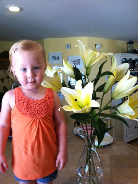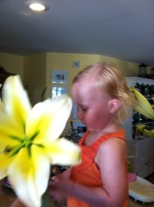 But realized you can’t really tell the size of the flowers. I couldn’t figure out what to use to acurately show the size until Baylor wanted to smell them: