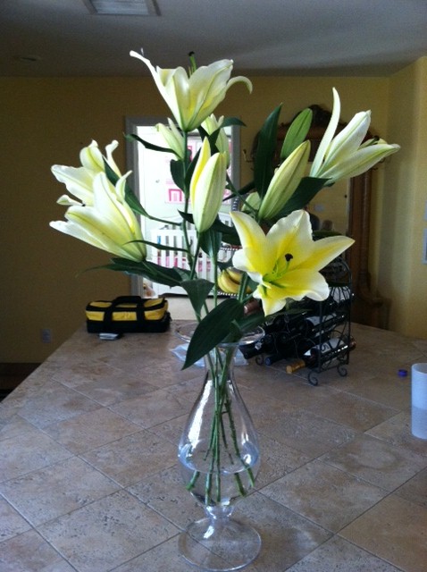 Lilies from AJ’s are one of my favorite things. But they are most definitely not in the budget so they are strictly for special occasions. I went straight for the Stargazers and came across Concordia lilies. They are by far the BIGGEST FLOWERS I have every seen! I took this picture for the post: