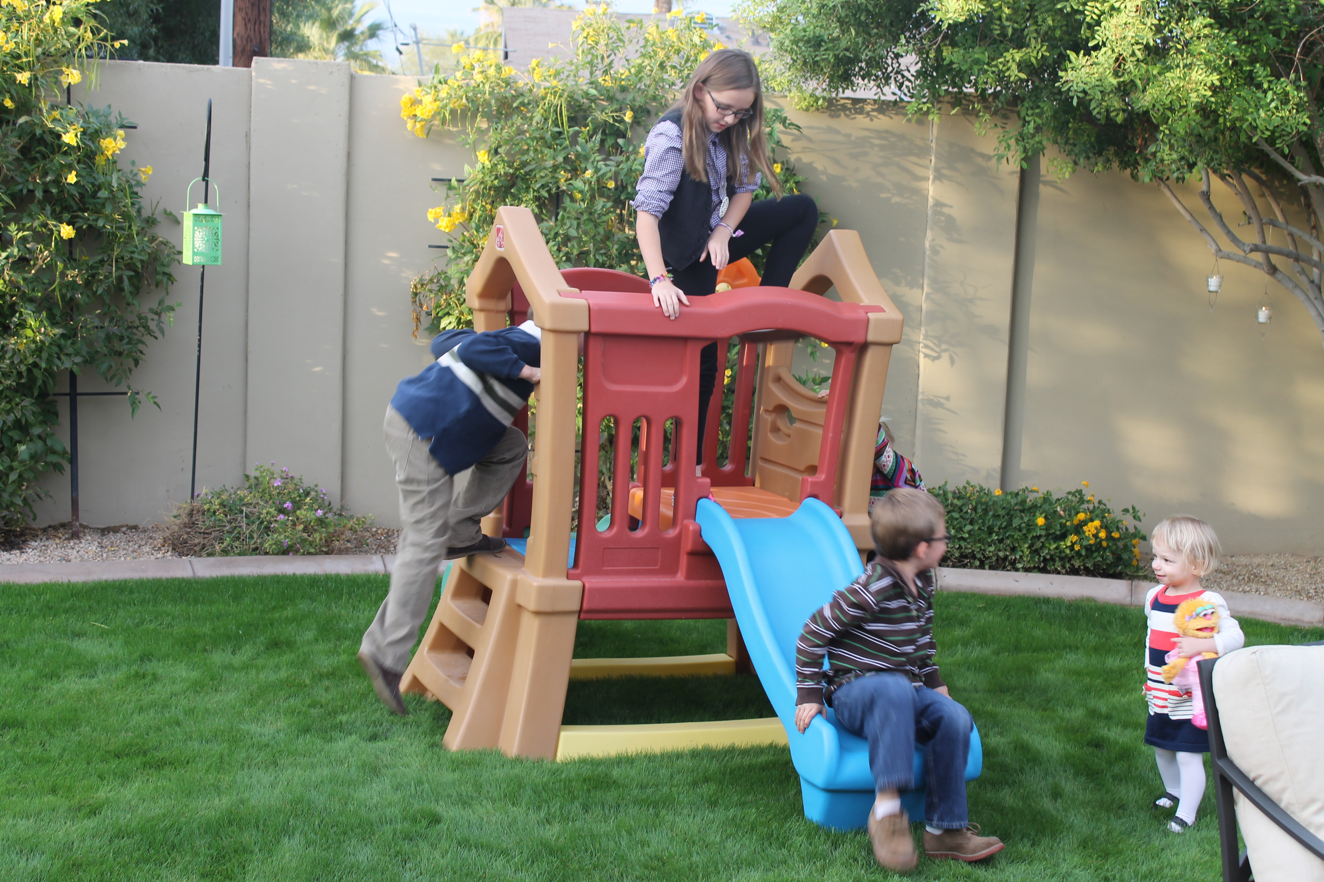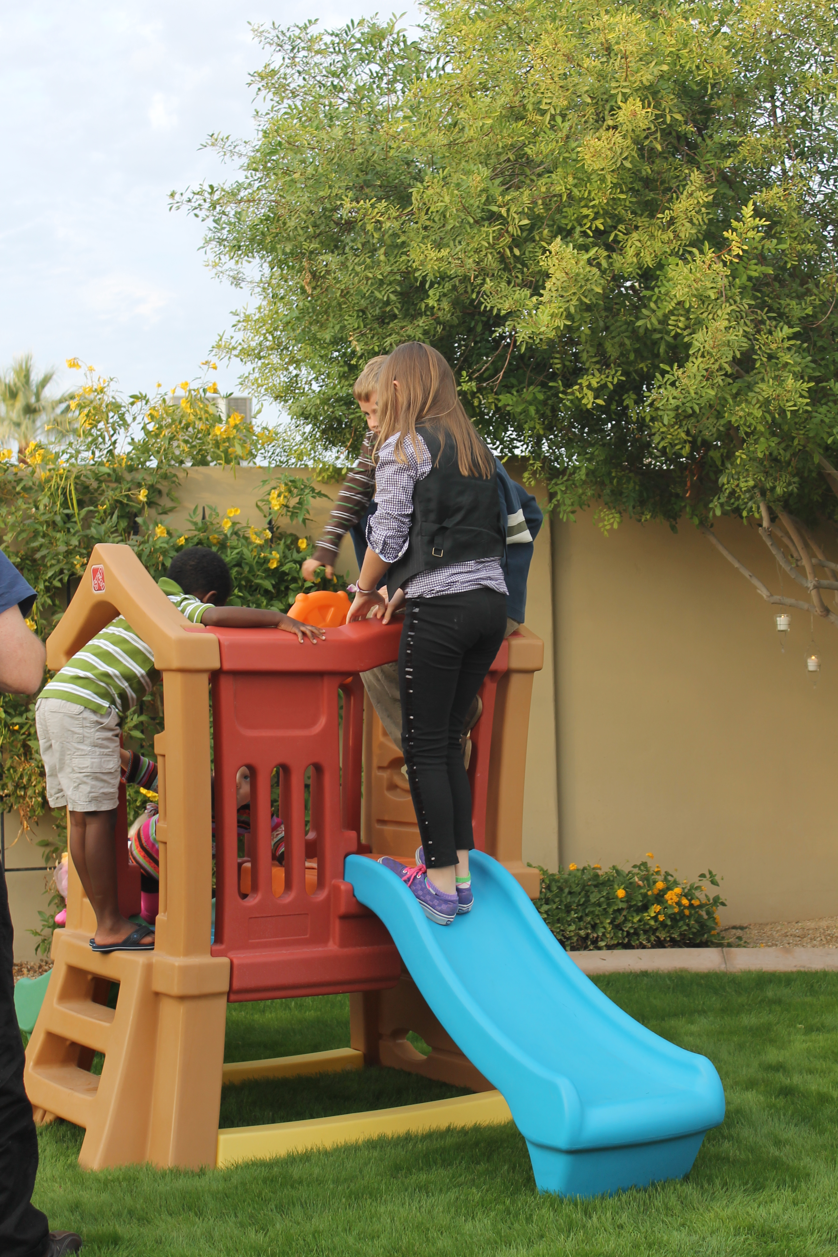 Dinner with our preschool friends – picture 4 towheads wearing every stinking piece of dress up clothes and accessories we have and parading through the house. It was fantastic.