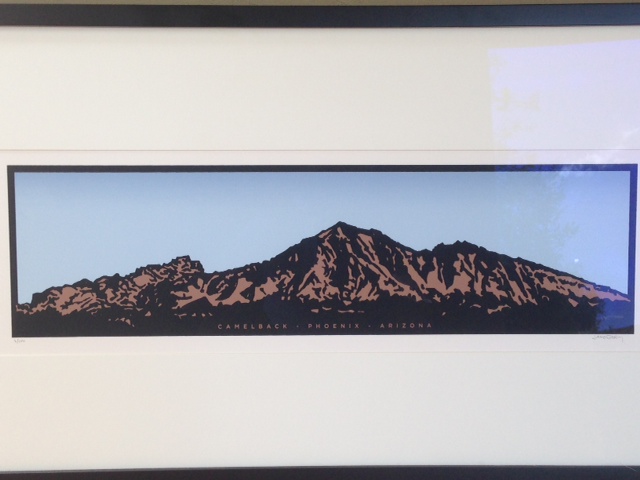 During a rare weekday breakfast date at Orange Table, PW and I spotted a picture of Camelback Mountain hanging on the wall. I realized it was the same artist that had just had an installation in the Belle Tower. A quick email to the artist later, we were arranging when he could drop off the print to us.
