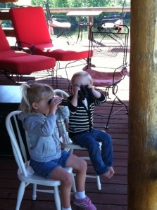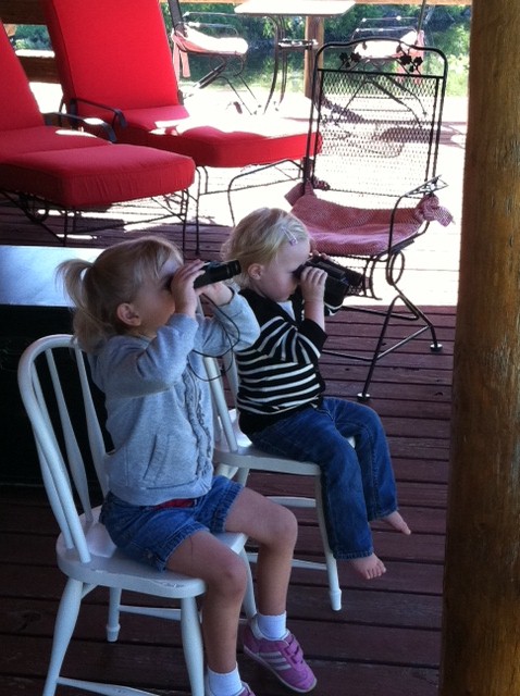 Technically, I think these two are fish watching. They are sitting on my mom and step dad’s porch in Montana, staring out at the lake. Sometimes they would shout “bird!!” and sometimes “fish!!”. I’m not sure if Baylor was confused as to what she was supposed to be looking at or if she really did see fish jumping. Either way, it’s adorable.
