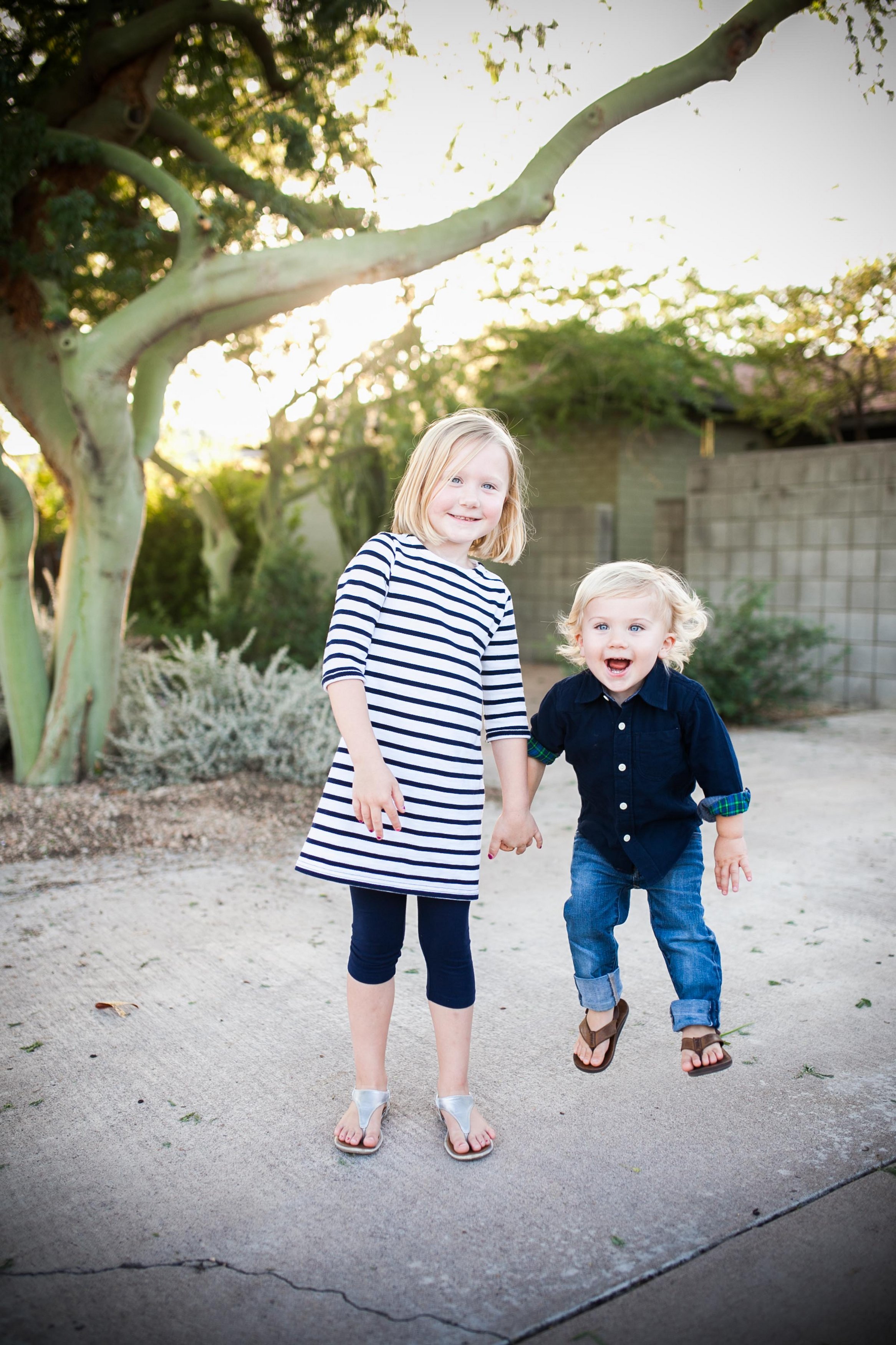 After seeing the pictures she took at the wedding, I immediately booked her for a family session. Right after that, I started a Pinterest page and the photographer, Stacey and I  set out to coordinate the clothing. I asked the neighbors if we could use their yards as alternative back drops and started threatening everyone in our house that they better get on board because I wanted SMILES in these pictures!