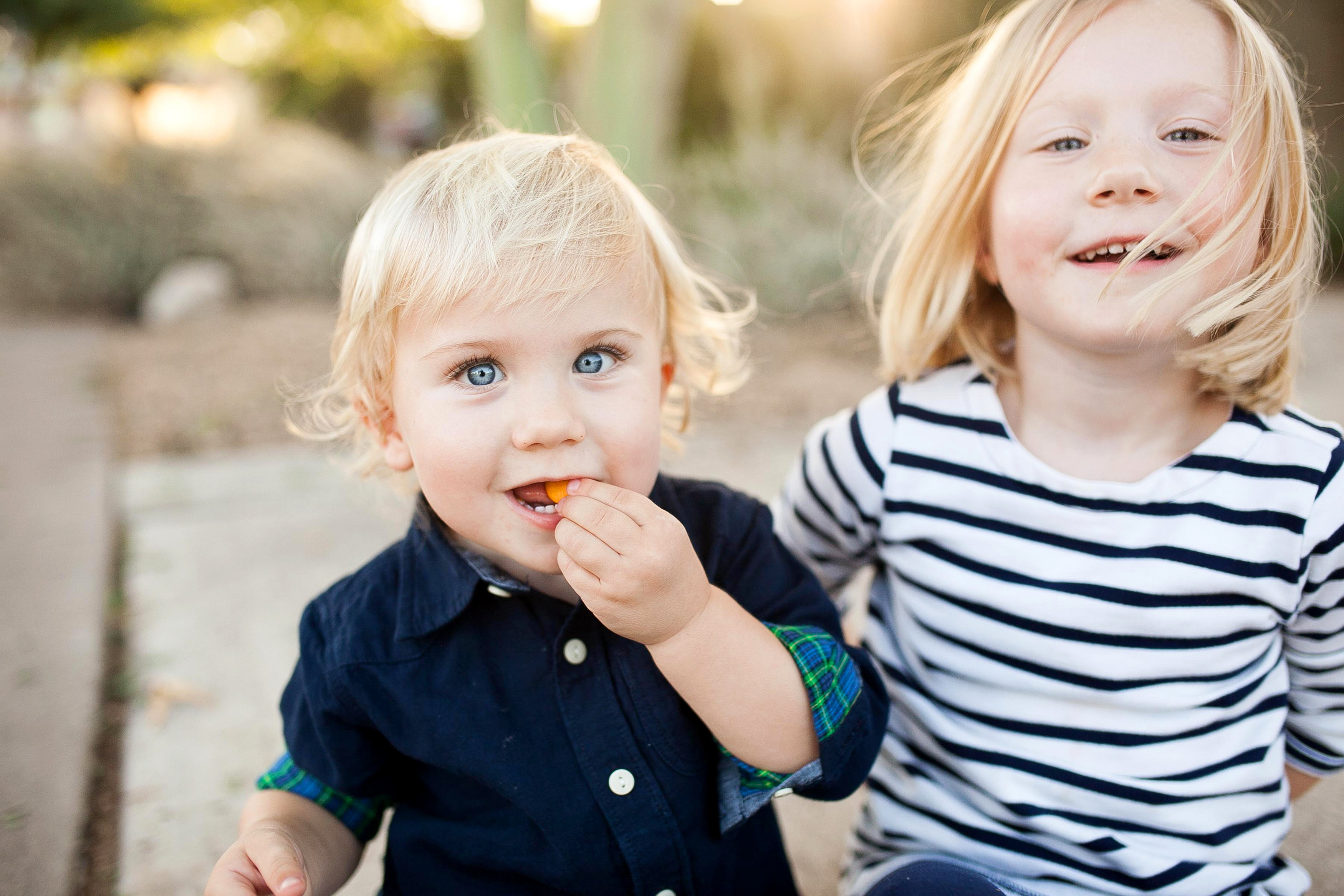 Cousins being cute in matching jammies.