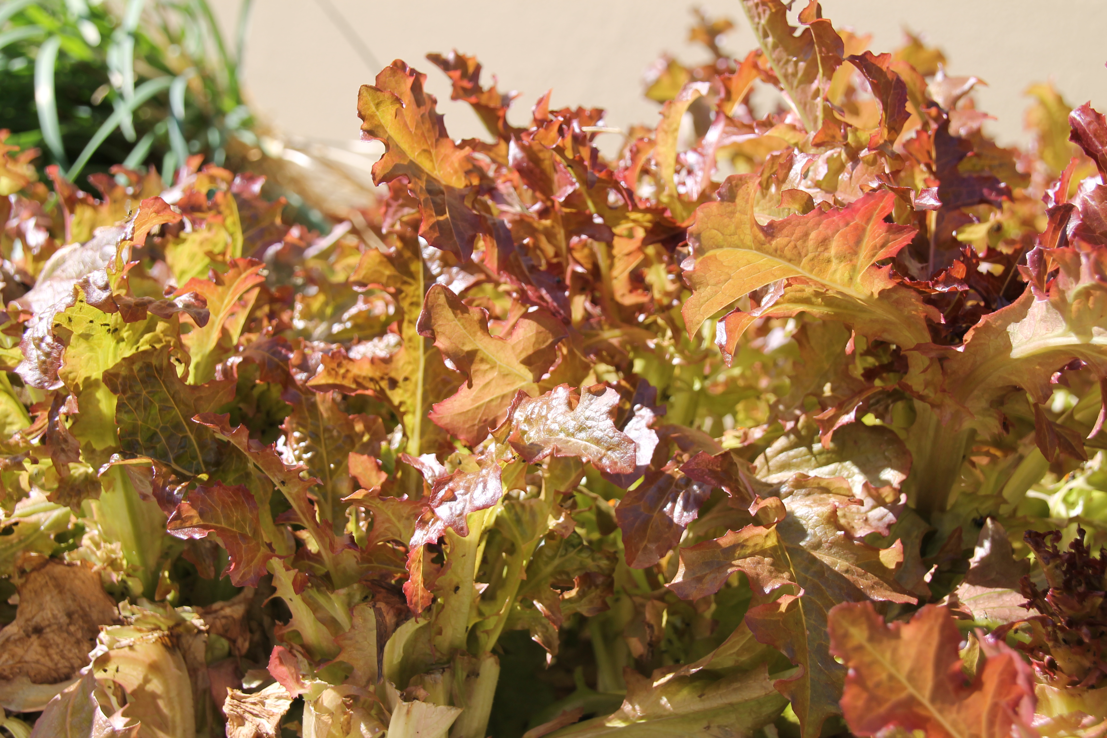 This growing season has been a tough one for my lettuce table. Normally by Christmas we are out cutting fresh leaves for salad every day. This year the hot – cold – hot temperatures in the fall made for some rough growing. I finally got the right combination of morning sun, umbrella shade in the afternoon and a weekly hit of a 20-20-20 fertilizer and boom! Lettuce for days. Weeks. Months!