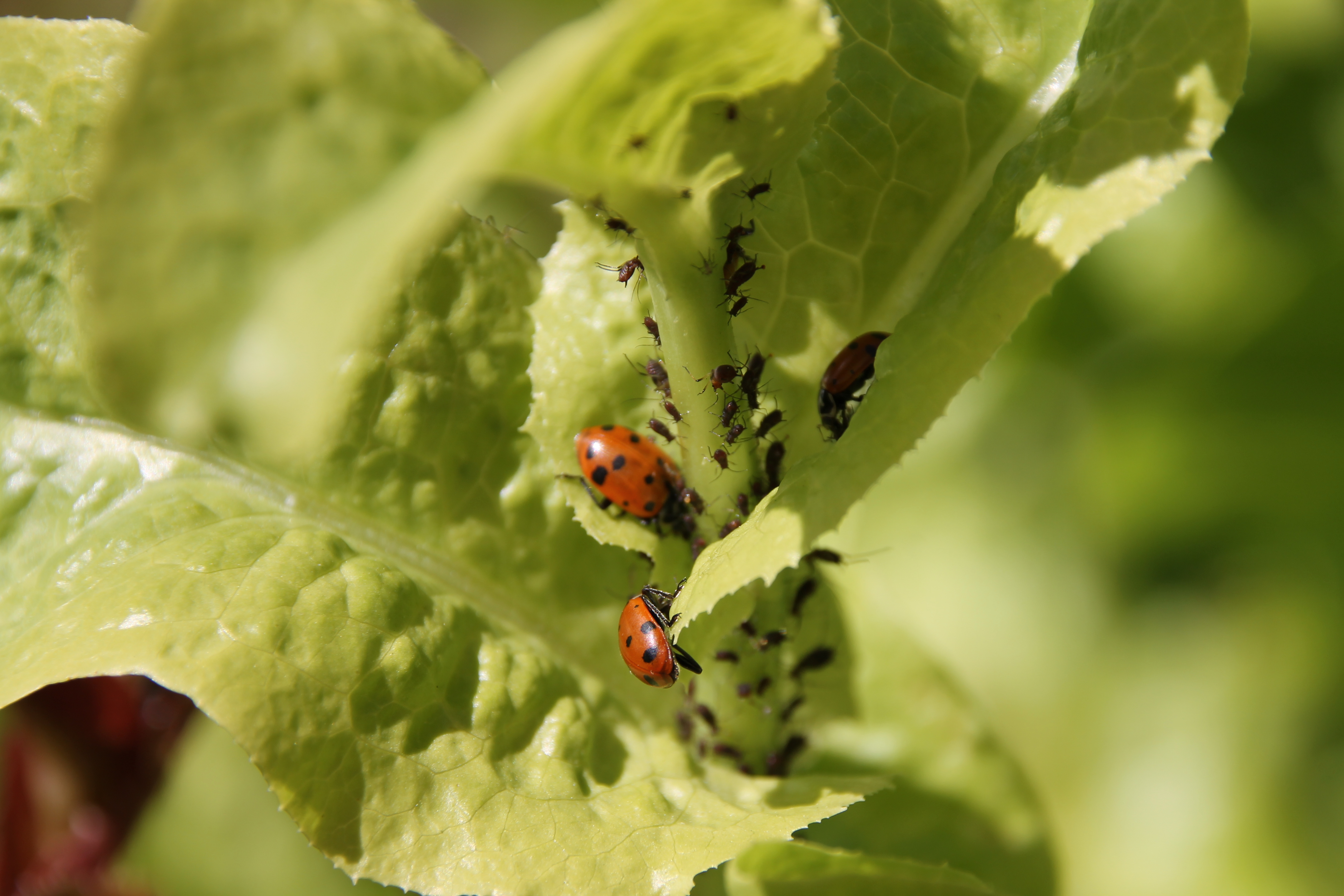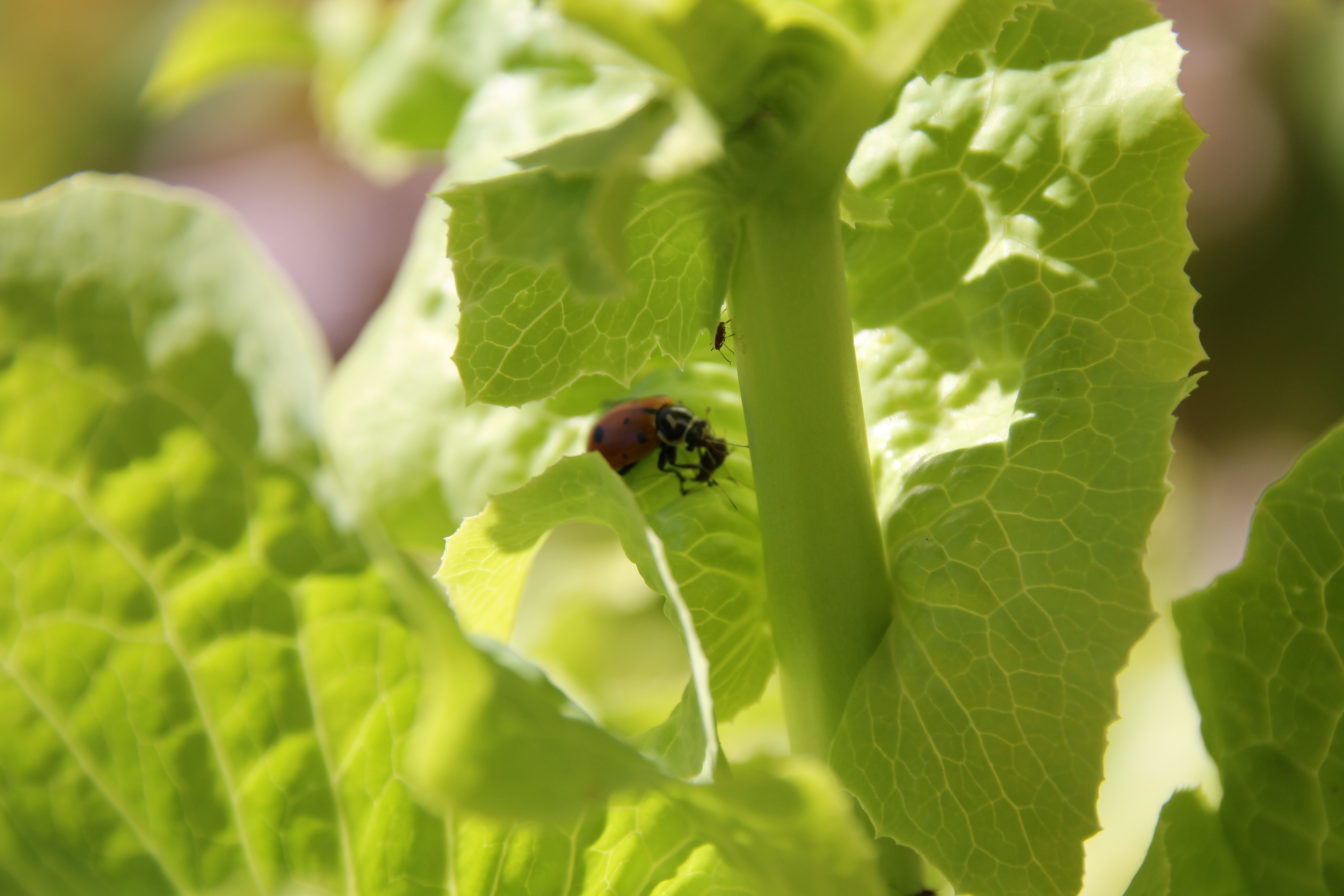Anyway. I decided I couldn’t take it any more and after several phone calls to local nurseries and Google searches, I found a retailer that would ship me some ladybugs asap. Ladybugs are natural predators of aphids and they won’t hurt my lettuce. Not to mention they are adorable. Yesterday when the little ventilated box arrived, it was like Christmas. No one should get this excited about a box of bugs…and yet there I was, sprinkling ladybugs onto the leaves of the lettuce saying go! eat, my pretties! eat them all!!! while laughing manaicly.