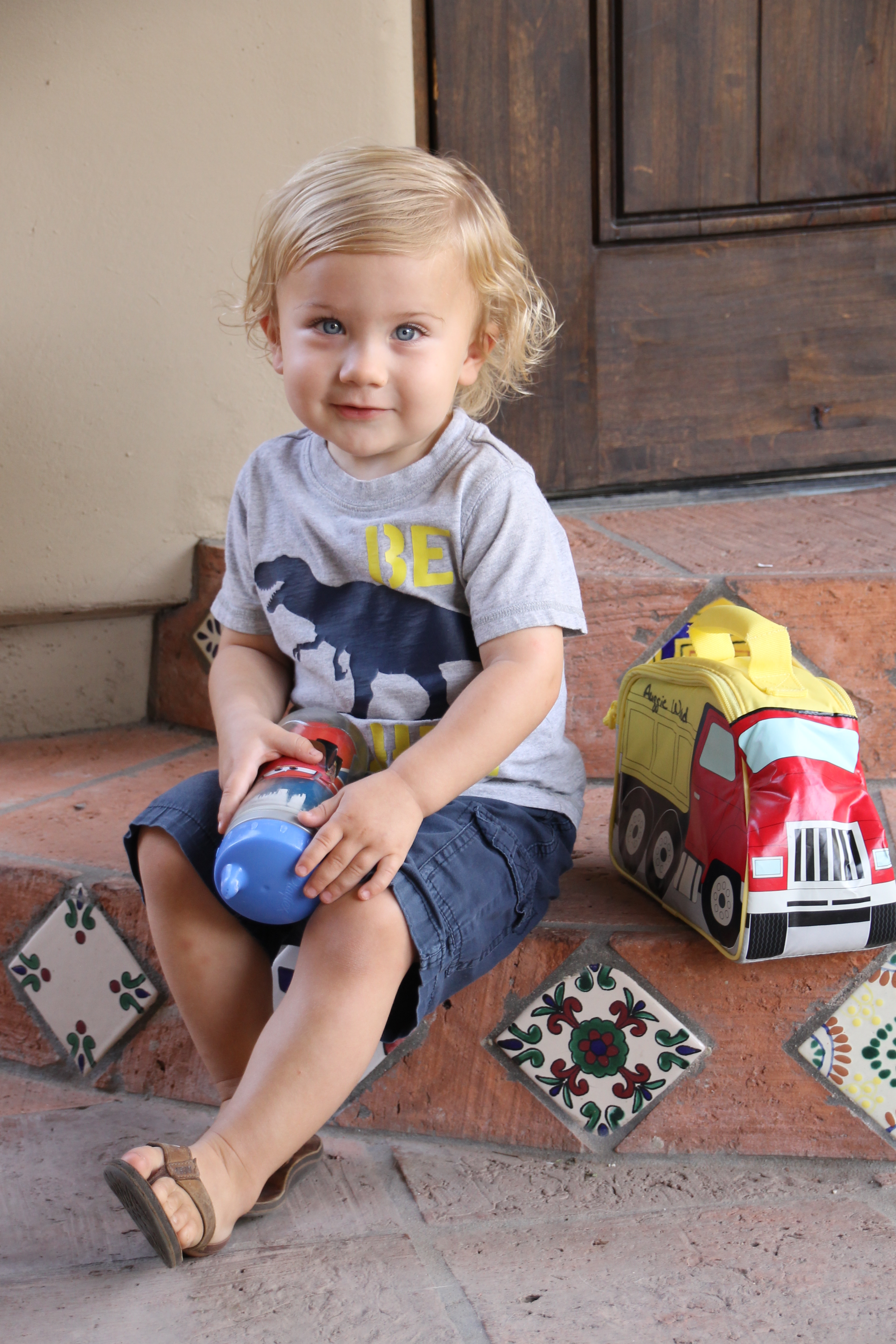 He was so pumped to have his OWN lunch box. He also refused to wear sneakers. Crossing fingers for Wednesday.